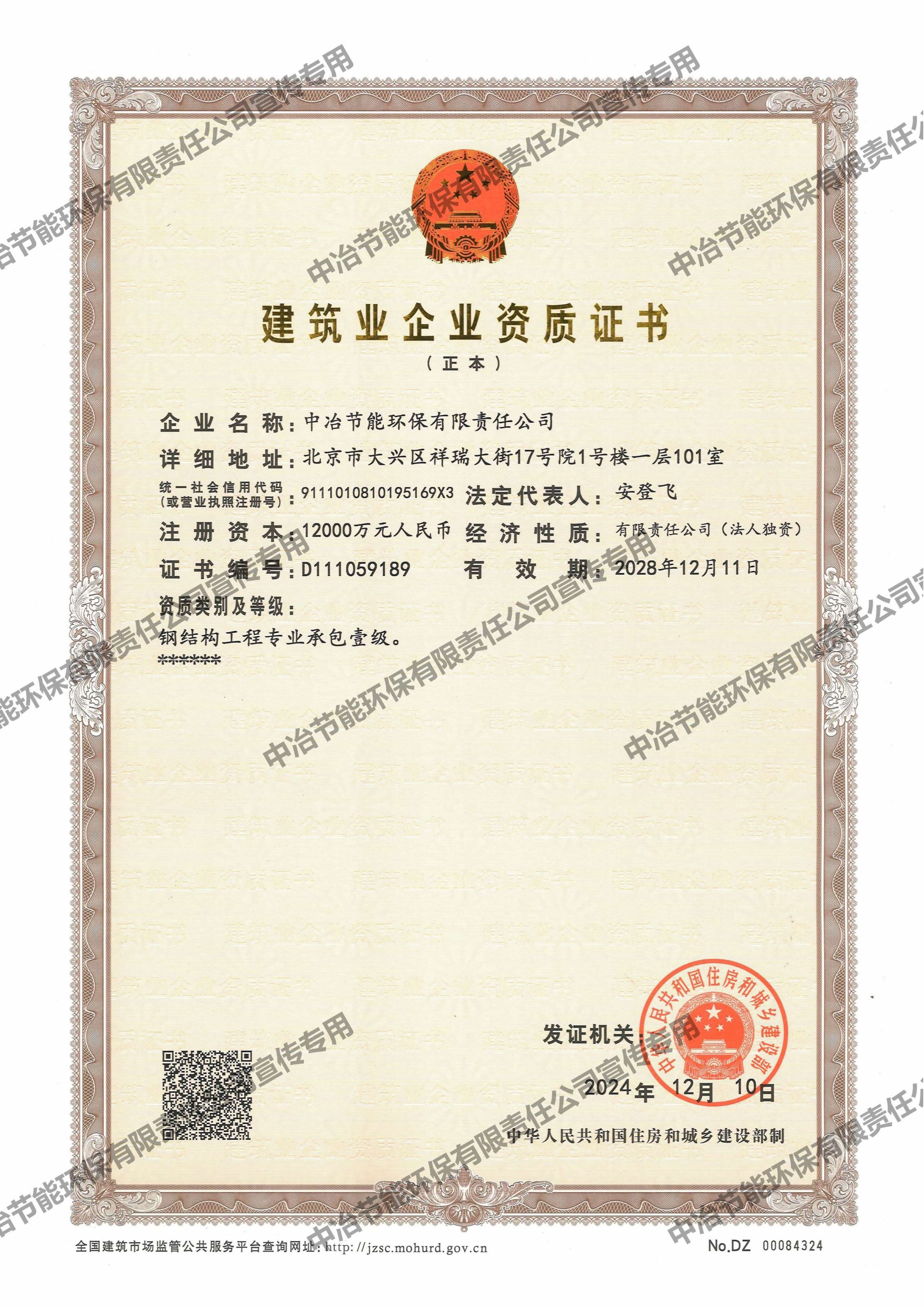 建筑业企业资质证书(钢结构工程专业承包壹级)