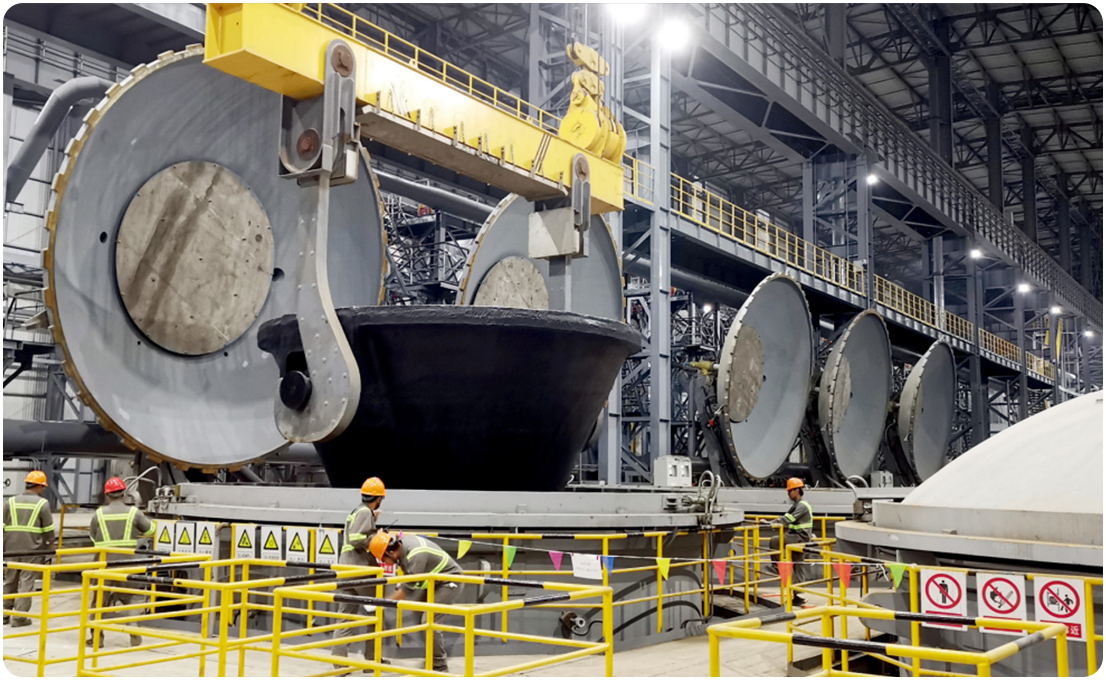 “熔融钢渣高效罐式有压热闷处理技术与装备”,以熔融钢渣在密闭的体系内倾翻、辊压破碎、有压热闷2.5小时为主要特征,实现了钢渣的资源化处理和热能回收,钢渣处理率达到100%,热能回收率可达30%,已广泛应用于宝武集团、鞍钢、首钢、河钢、沙钢、建龙、越南河静钢铁、马来西亚联合钢铁等国内外大型钢铁企业,市场占有率达90%以上。